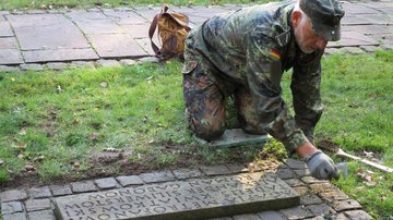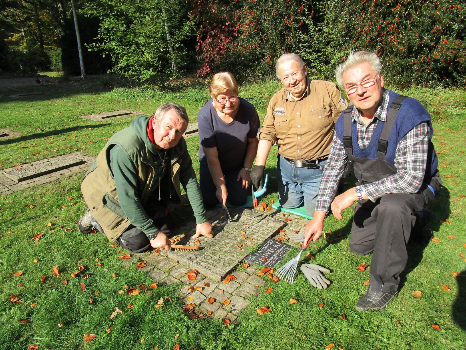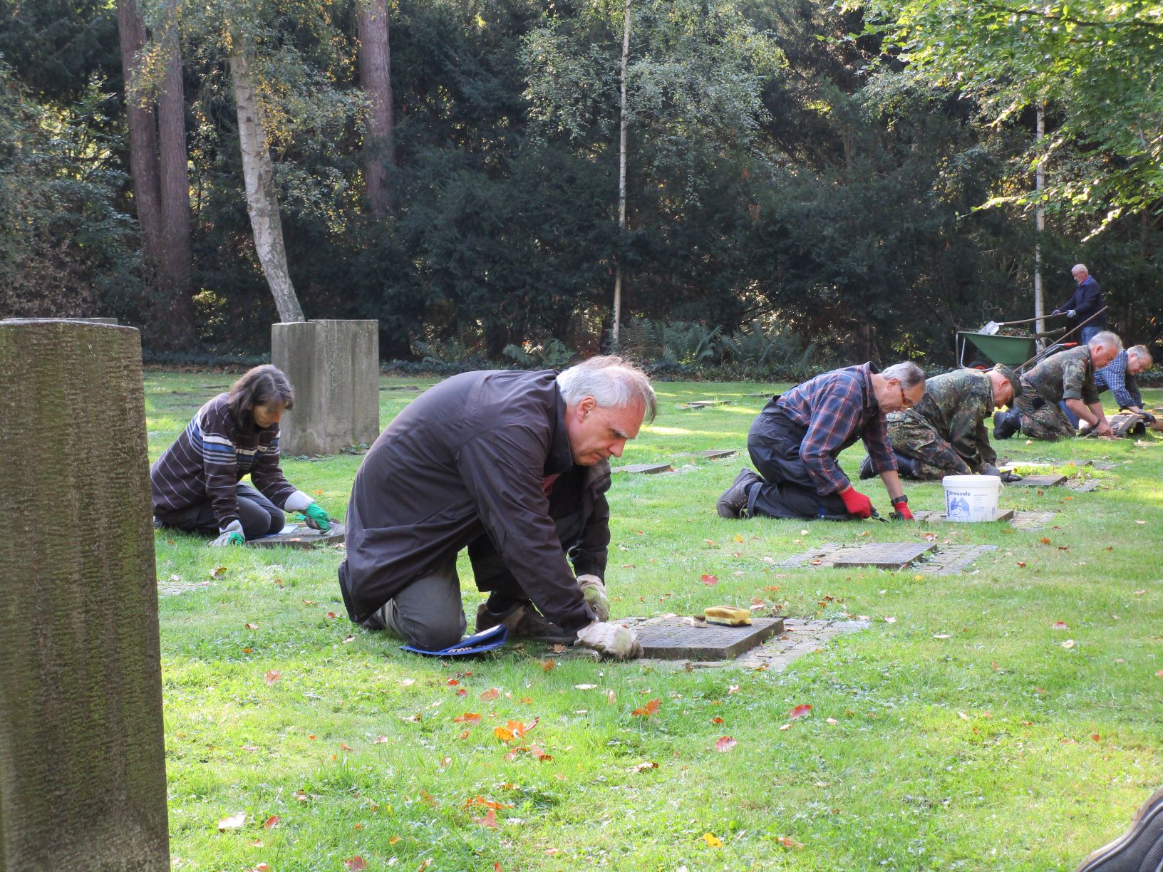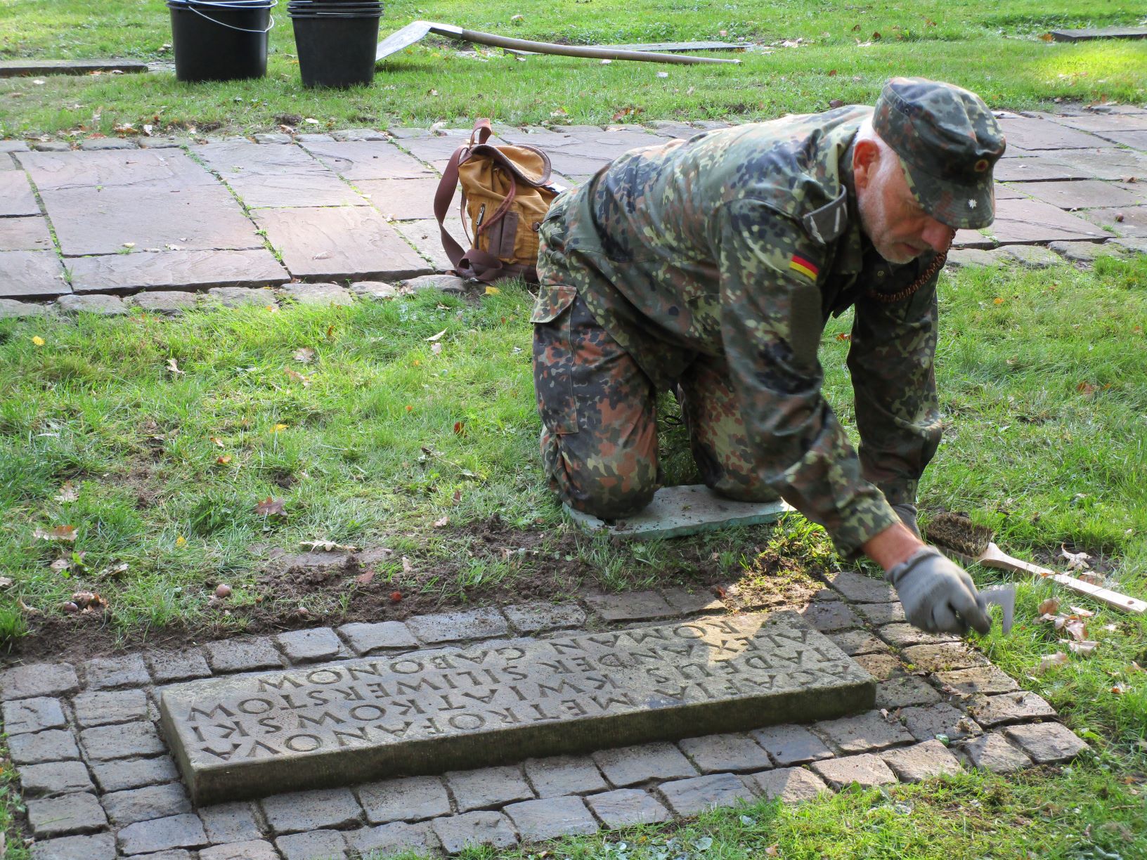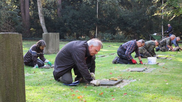 Im vergangenen Jahr haben Bremer Reservisten und Ehrenamtliche die Arbeit auf Feld NN bereits begonnen, nun setzten die Reservisten aus Niedersachsen sie mit Wasser, Bürste und Fugenkratzer fort. „Wenn wir hier fertig, sind die Gräber wieder für einige Zeit in Ordnung. Ich mache das gerne“, so ein Kommentar. Am Ende war man sich einig, eine wertvolle, versöhnende Arbeit geleistet zu haben: „Jeder Mensch muss ein würdiges Grab haben, die Angehörigen brauchen einen Platz zum Trauern! Dieser Platz ist eine Mahnung zum Frieden!“