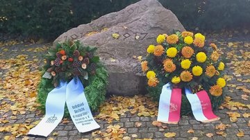 Im Anschluss ging man gemeinsam auf das Kriegsgräberfeld „K“ als zentralem Gedenkort für die Opfer von Krieg und Gewalt und legte dort Kränze nieder.